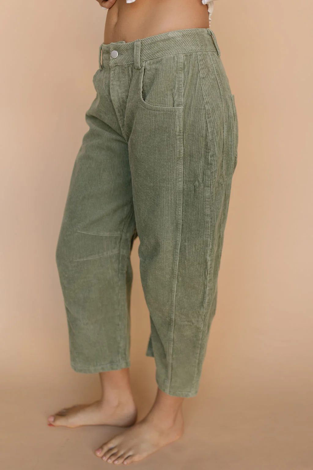 Main details: Corded barrel jeans. No elastic or stretch. Zipper fly front