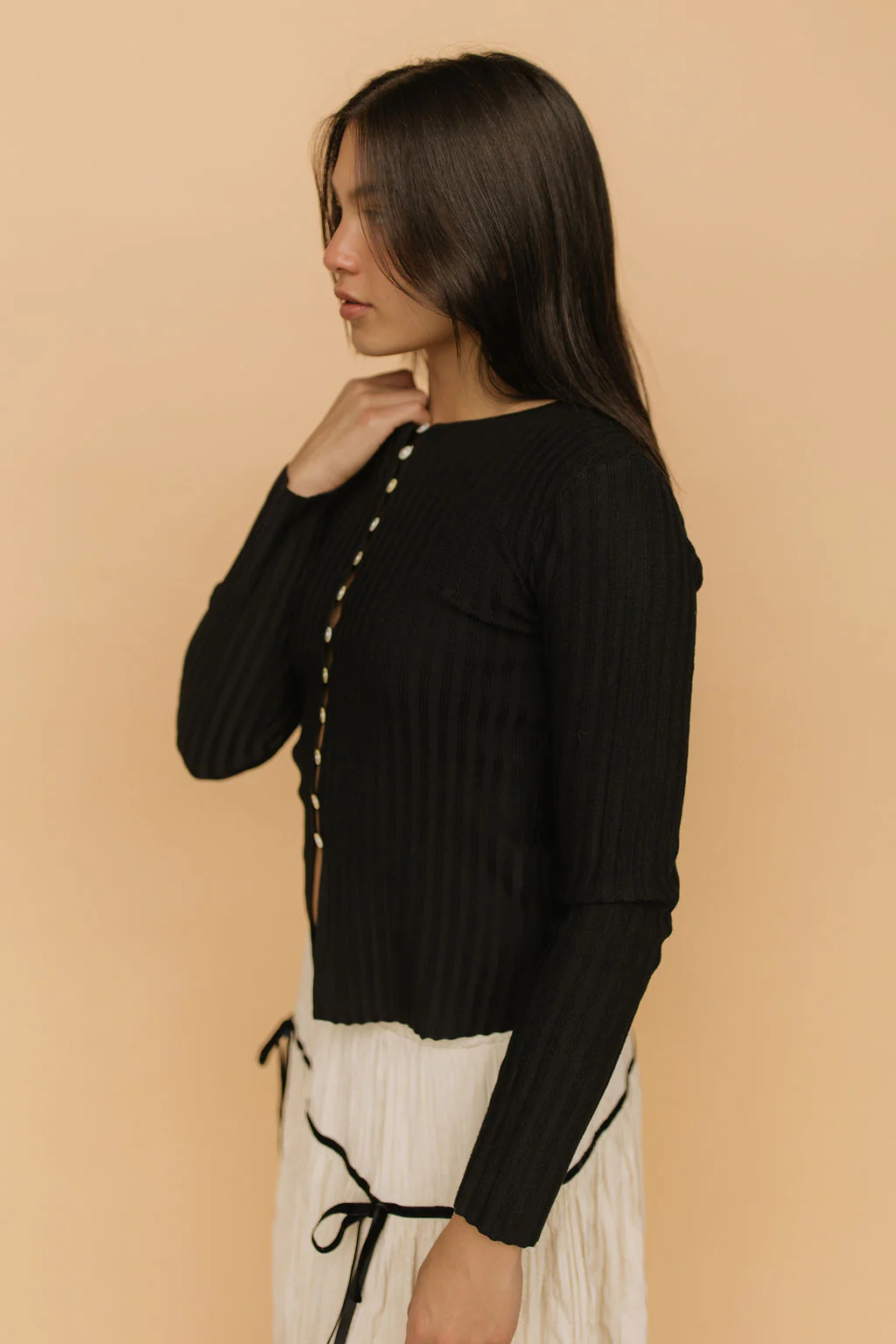 Indy Ribbed Cardigan in Black