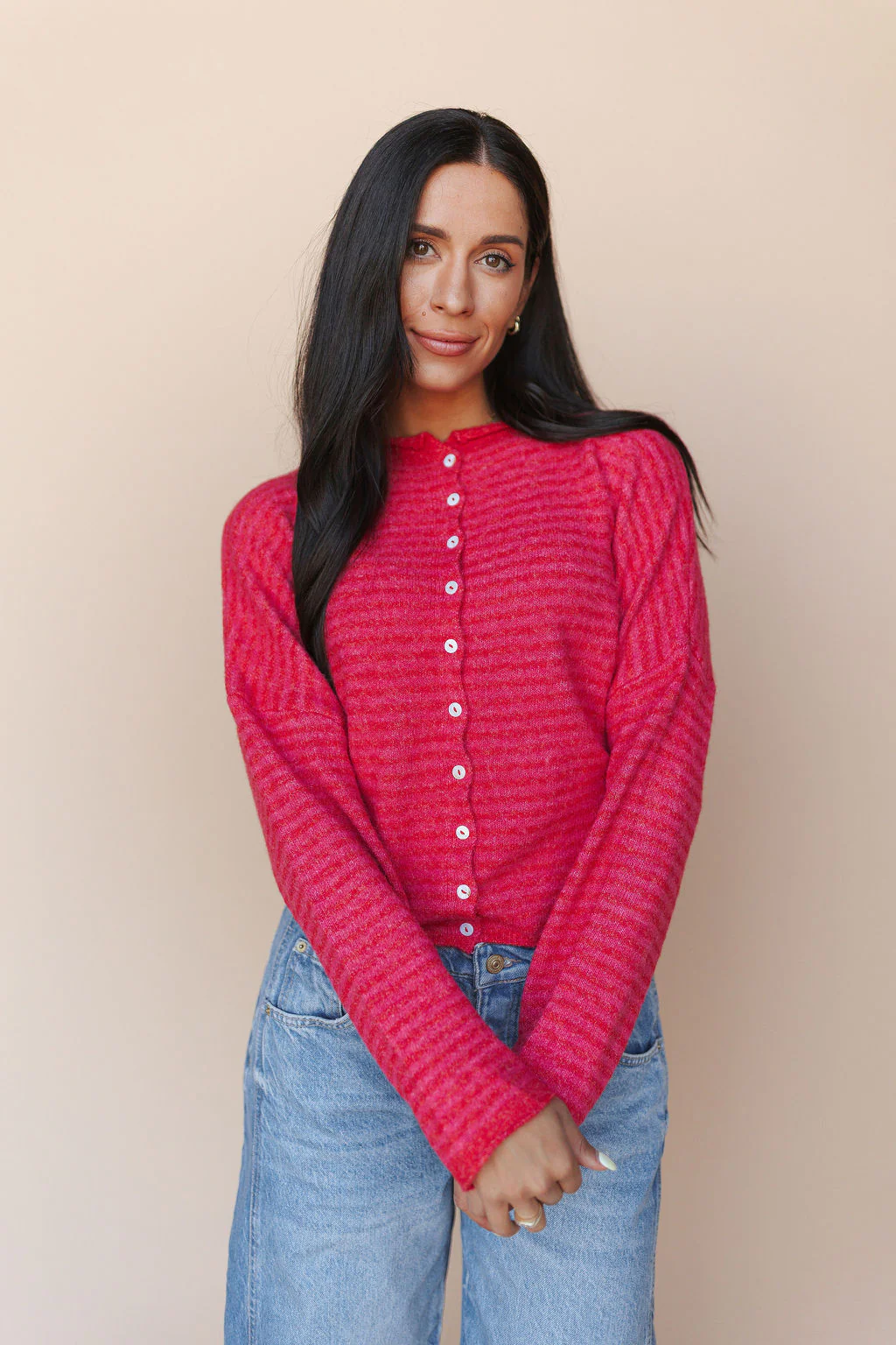 Piper Cardigan in Cherry Red Stripe