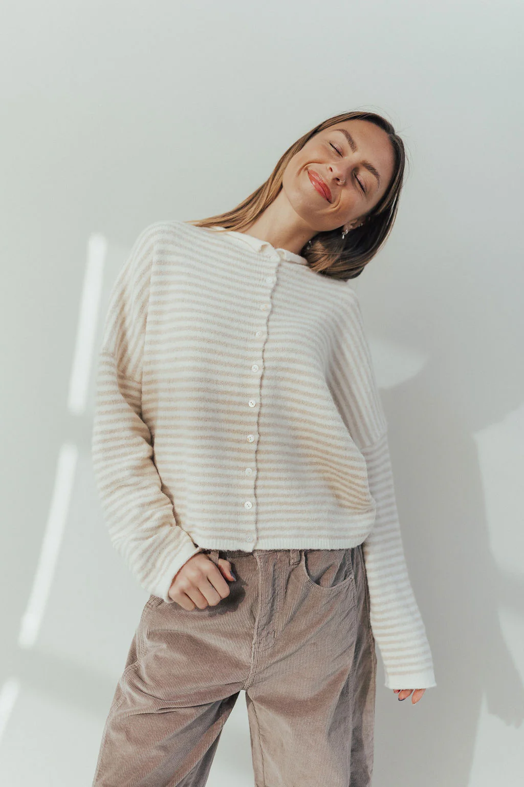 Piper Cardigan in Cream Stripes
