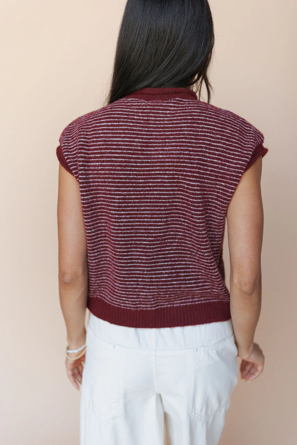 Piper Short Sleeve Cardigan in Maroon Stripes