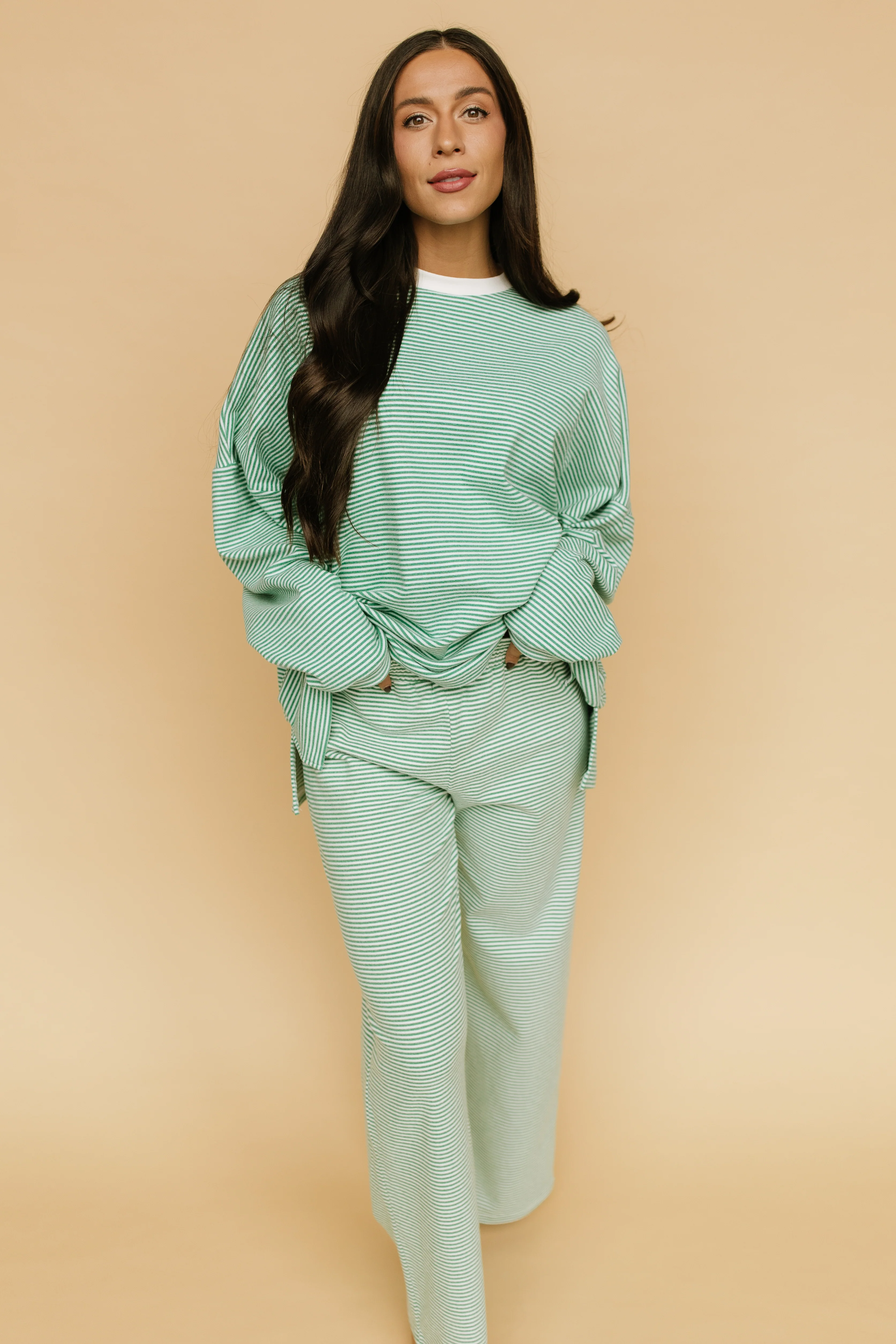 Details: Soft stretchy stripe fleece pants with elastic waistband